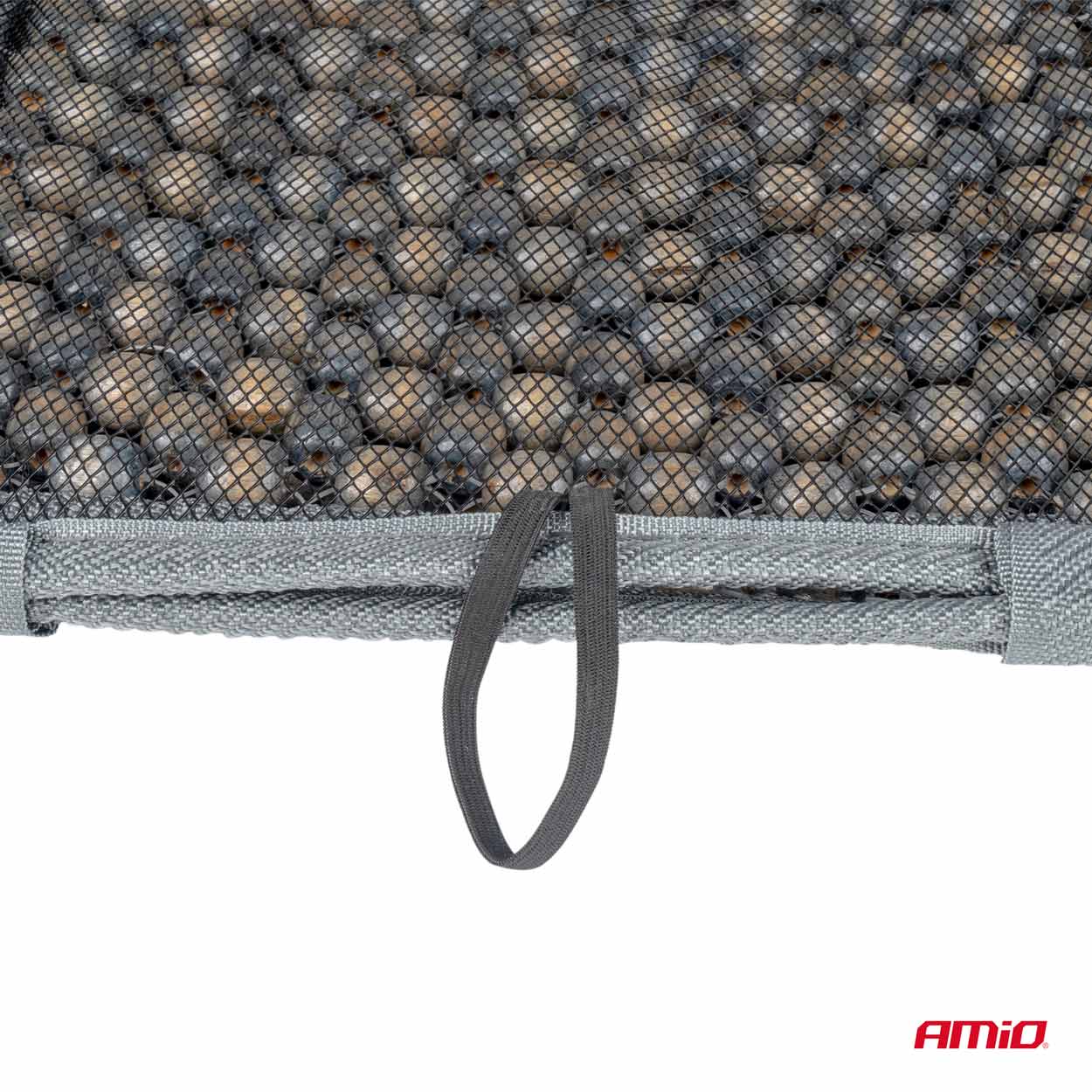 Mata na siedzenie z drewnianych koralików, zwiększa komfort podróży. Wspomaga układ krążenia, a co za tym idzie zmniejsza poczucie zmęczenia. Struktura koralików zapewnia mikrowentylację oraz przynosi ulgę dla pleców. Obrzeża zostały wykonane z miękkiego weluru (pluszu). Może być stosowana w pojazdach wyposażonych w boczne poduszki powietrzne. Mocowanie maty za pomocą gumki. Rozmiar: długość całkowita 90cm, szerokość siedziska i oparcia 44cm.