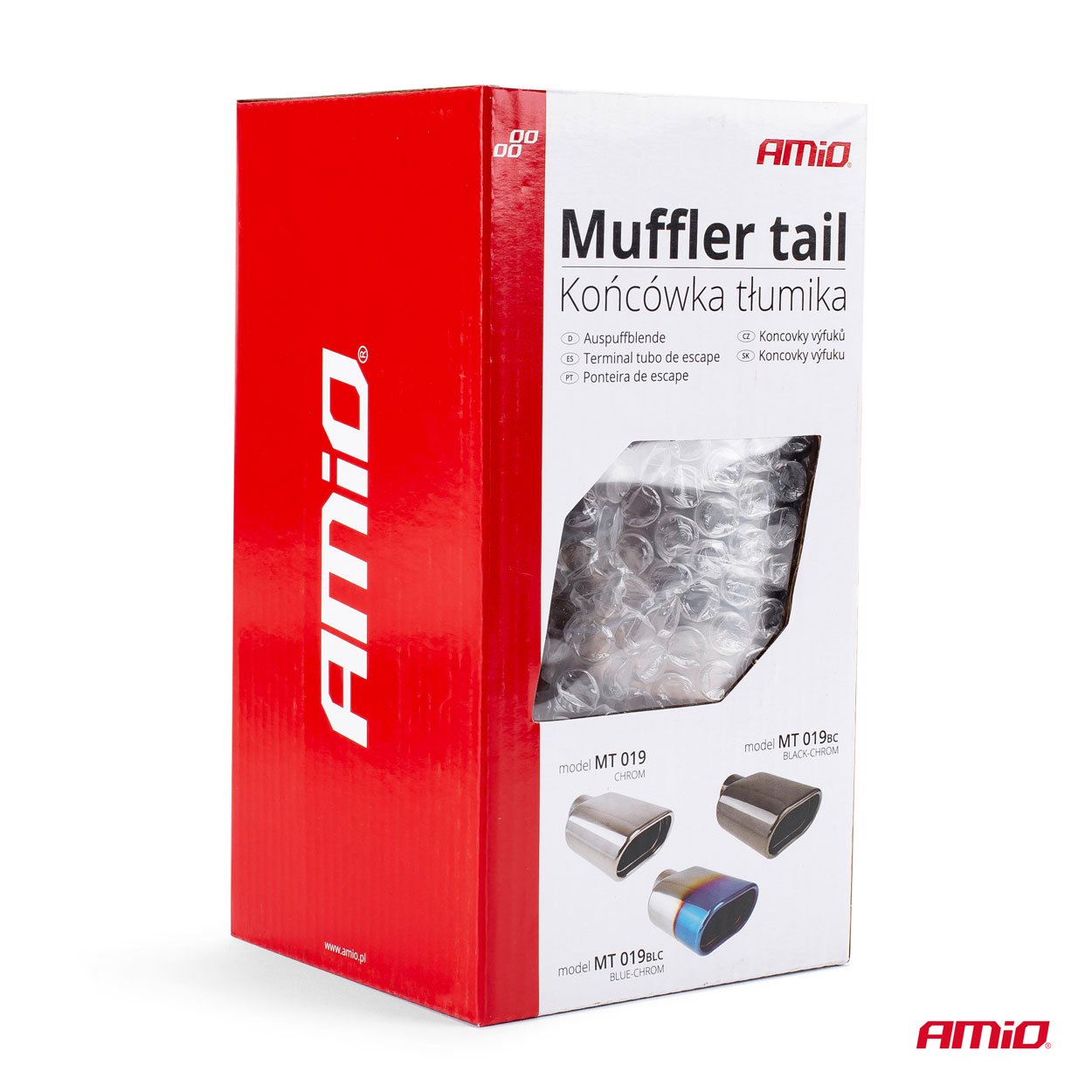 Końcówka tłumika, chromowana ze stali nierdzewnej. Średnica montażowa: 33-50 mm Końcówka uniwersalna nadająca elegancki sportowy wygląd. Poprzez szeroki zakres regulacji uchwytów pasuje do większości samochodów (dwa sposoby montażu: do przykręcenia za pomocą śrub montażowych lub do przyspawania).