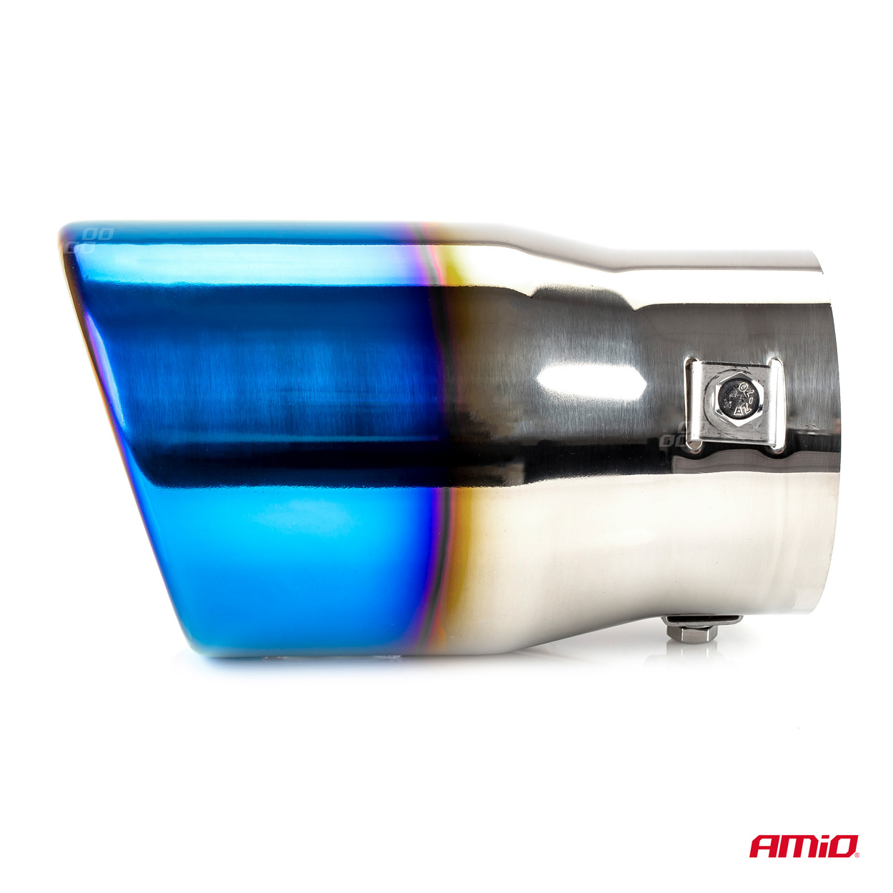Końcówka tłumika, chrom z niebieskim wykończeniem wykonana ze stali nierdzewnej kwasoodpornej model MT007BLC. Łatwy i szybki montaż poprzez dokręcenie specjalnych zacisków (po przejechaniu 500-1000km prosimy o sprawdzenie dokręcenia śrób). Końcówkę można zamontować również na stałe poprzez przyspawanie. Średnica montażowa: 48 - 65 mm