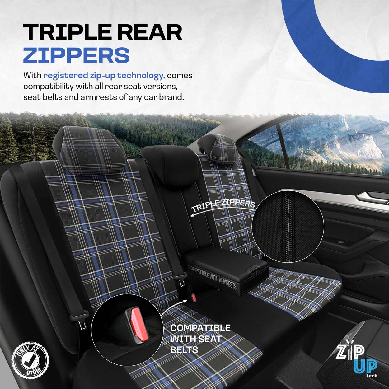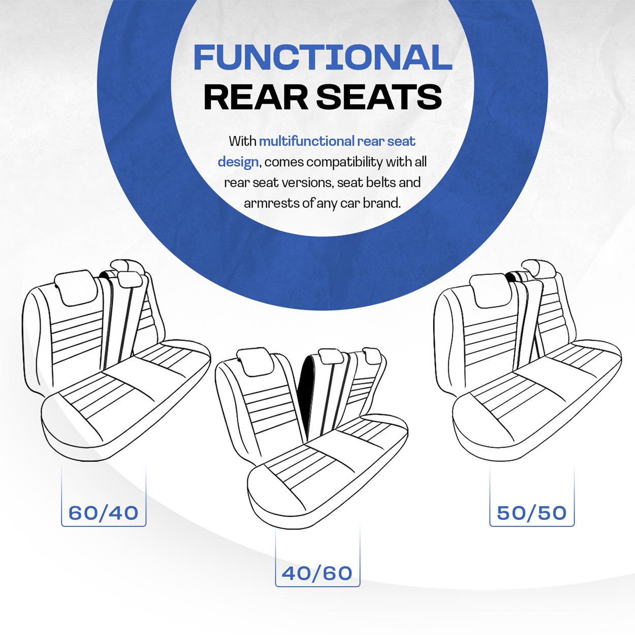 Produkt stworzony z najwyższej jakości tkanin tapicerskich. Połączenie najlepszych materiałów oraz wysoka dbałość o detale podczas wykonania zapewnia ekskluzywny wygląd oraz wyjątkową trwałość , a także doskonałą ochronę foteli przed zabrudzeniami i przetarciami. Pokrowce w standardzie posiadają certyfikowany szew AIRBAG, dzięki czemu przystosowane są do samochodów zarówno z bocznymi poduszkami powietrznymi w fotelach, jak i do standardowych siedzeń. Dzięki zastosowaniu specjalnego szwu, zakrywają fotele w całości nie zakłócając pracy AIRBAG-ów. Oczywiście rozwiązanie to jest wielokrotnie przebadane oraz certyfikowane . Wszystkie materiały w całości laminowane są pianką poliuretanową, zapobiegającą przesuwaniu się pokrowców względem foteli. Pokrowce zasłaniają fotele w całości, przez co znakomicie chronią fotele przed zabrudzeniem, są trwałe i łatwe do czyszczenia, a dzięki modnym wzorom odświeżają wnętrze oraz poprawiają jego estetykę. Pokrowce posiadają zamki w tylnej kanapie, dzięki czemu pasują do większości siedzeń dostępnych na rynku , (kanap niedzielonych, dzielonych prawo jak i lewostronnie). Możemy bez problemu złożyć oparcia, aby zwiększyć przestrzeń bagażową. Pokrowce nie posiadają wycięć na pasy oraz zagłówki tylne ze względu na przeznaczenie do różnych modeli samochodów. Należy samodzielnie wykonać potrzebne otwory po dokładnym dopasowaniu i montażu. Pokrowce są wykonane z materiałów laminowanych pianką oraz podszewką dzięki czemu nie ulegają popruciu. Produkt świetnej jakości szyty w Turcji, kraj ten słynie ze szwalni na bardzo wysokim poziomie. Pokrowce uniwersalne, pasują do większości samochodów. Przykładowe modele podane poniżej. Alfa Romeo: 147, 156, 159, Brera, Giulia, Guilietta, Mito, Stelvio, 145, 146, Audi: A1, A3, A3, A4, A5, A6, A7, Q2, Q3, Q5, Q7, A8, TT, Bmw: 1 Series, 2 Series, 3 Series, 4 Series, 5 Series, X1, X2, X3, X4, X5 , X6, 7 Series, Chery: Tiggo, Alia, Kimo, Chevrolet: Aveo, Camaro, Captiva, Cruze, Epica, Kalos, Lacetti, Rezzo, Spark, Suburban, Tahoe, Trax, Avalance, Chrsyler: 300C, Citroen: Berlingo, C1, C2, C3, C4, C4 Cactus, C4 Grand Picasso, C4 Picasso, C5, C-elysee, Ds3, Ds4, Ds5, Nemo, Saxo, Xsara, Xsara Picasso, Jumper, Jumpy, Dacia: Dokker, Duster, Duster, Lodgy, Logan, Sandero, Sandero Stepway, Daihatsu: Materia, Terios, DFM: Rich, Succe, Dodge: Nitro, Fiat: 124 Spider, 500, 500C, 500L, 500X, Albea, Brava, Bravo, Doblo, Egea, Fiorino, Grande Punto, Linea, Marea, Palio, Panda, Sedici, Stilo, Siena, Tempra, Tipo, Freemont, Fullback, Ducato, Ford: B-max, C-max, Connect, Escort, Fiesta, Focus, Fusion, Kuga, Mondeo, Mustang, Tourneo Courier, Ka, Exp-lorer, Ranger: Gelly, Emgrand, Honda: Accord, City, Civic, Honda, Cr-v, Jazz, Hyundai: Accent, Elantra, Getz, i10, i20, i30, Santa Fe, Tucson, ix35, Matrix, H 1, H 100, Starex, Isuzu: D-Max, Iveco, Daily, Jaguar, X-Type, Jeep: Cherokee, Compass, Grand Cherokee, Renegade, Patriot, Kia: Ceed, Cerato, Niro, Picanto, Rio, Sorento, Soul, Sportage, Pregio, Land Rover: Evoque, Freelander, Range Rover, Discovery, Mazda: 323, 626, 3, Mpv, B Series, Mercedes: 190 Series, A Series, B Series, C Series, Cla, Clk, Cls, E Series, Gl Series, Gla, Ml, S Series, Citan, Sprinter, Vito, Vivano, Mini, Cooper, Countryman, Mitsubishi: Asx, Attrage, Colt, Lancer, Carisma, Pajero, Outlander, L 200, L 300, Nissan: Almera, Tino, Juke, Micra, Note, Primera, Pulsar, Qashqai, X-Trail, Terrano, Navara, Opel: Astra G, Astra H, Astra J, Astra K, Combo, Corsa, Grandland, Insignia, Meriva , Mokka, Vectra, Zafira, Vivaro, Movano, Peugeot: 206, 207, 208, 301, 206, 307, 308, 406, 407, 508, 2008, 3008, 5008, Bipper, Partner, Partner Tepee, RCZ, 106, 306, Boxer, Expert, Porsche: Cayenne, Panamera , 911, Renault: Captur, Clio, Fluence, Kadjar, Kangoo, Laguna, Latitude, Megane, Modus, Scenic, Grand Scenic, Symbol, Talisman, Twingo, 9, 12, 19, 21, Koleos, Master, Trafic, Seat: Altea, Altea XL, Cordoba, Exeo, ibiza, Leon, Toledo, Ateca, Skoda: Fabia, Kodiaq, Octavia, Rapid, Roomster, Superb, Yeti, Ssangyong: Tivoli, Kyron, Rexton, Actyon, Korando, Subaru, Forester, impreza, XV, Suzuki: Alto, Swift, SX4, Grand Vitara, Vitara, Baleno, Jimny, Alto, Baleno, Jimny, Tata, Xenon, Telcoline, Toyota: Auris, Avensis, CH-R, Corolla, RAV-4, Verso, Yaris, Land Cruiser, Hilux, Hi-Ace, Volkswagen: Beetle, New Beetle, Bora, Caddy, E-Golf, Golf, Jetta, Passat, Passat CC, Polo, Scirocco, Sharan, Tiguan, Touareg, Touran, Vento, Amarok, Transporter, Crafter, Caravelle, Multivan, LT, Volvo: S 40, S 60 , S 80, S 90, V 40, XC 60, XC 90, XC 70